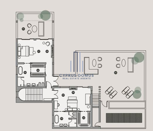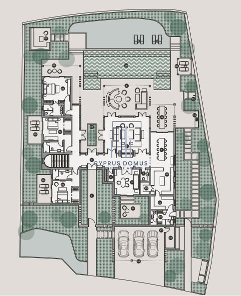 It’s a balancing act of architectural design and functionality the entire plot is considered, resulting in a space that is optimally utilized, featuring multiple points of that flow into and around each other without interruption, including overflow pools, outdoor dining spaces and casual seating circling bespoke fire pits.