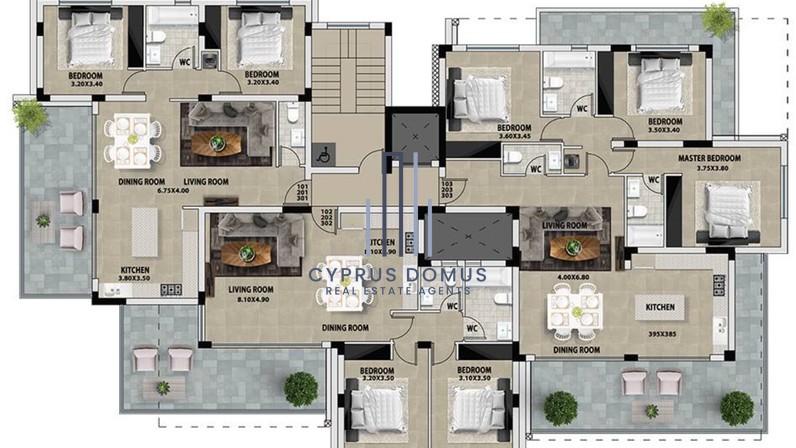 The apartment consists of an open plan kitchen, dining and living area, 3 bedrooms and 2 bathrooms.