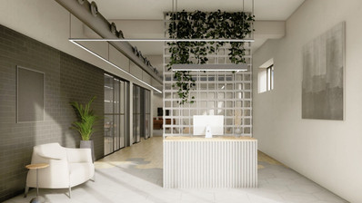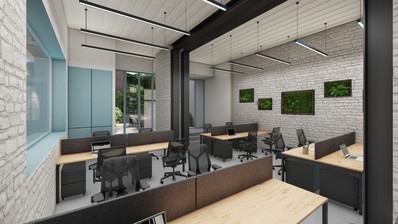 The commercial development features a fourth-floor building with 5 modern offices, each occupying its own floor and boasting contemporary layout spaces.