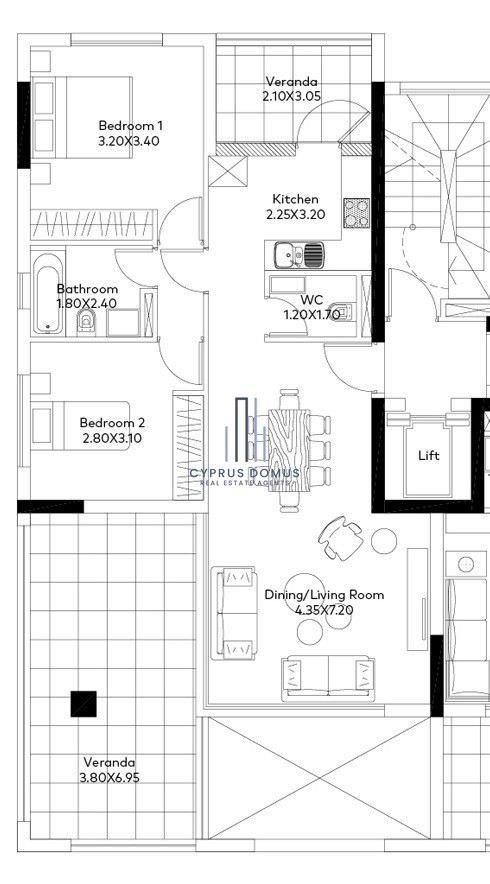 Built in 2019, this apartment features a bright open-plan design that maximizes space and natural light. Two cozy bedrooms provide a peaceful retreat, and the bathroom is equipped with modern fixtures.