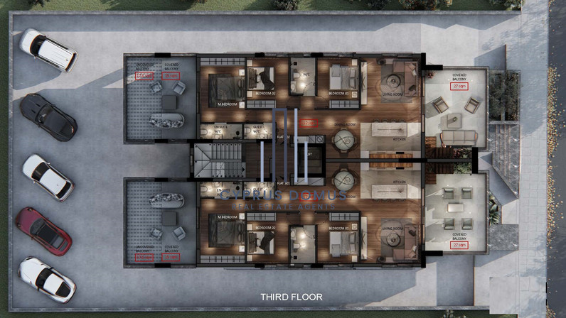 This spacious property offers 112 square meters of thoughtfully designed internal space, providing an ideal home for families or those seeking extra comfort. The apartment features three bedrooms, two modern bathrooms (1 ensuite), and 1 guest w/c, finished to a high specification.
