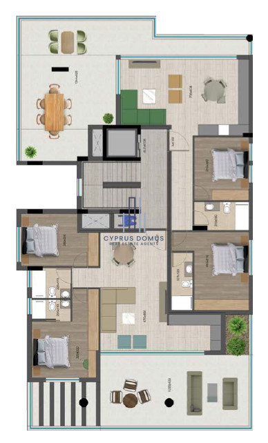 This well-designed residence offers an internal living space of 80 square meters and features two spacious bedrooms and two stylish bathrooms.