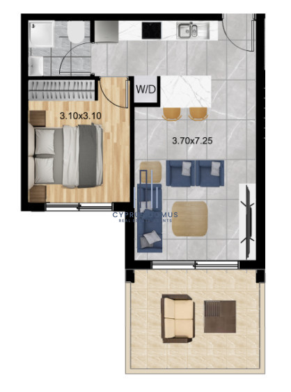 This property features a well-designed internal space of 50 m², with one spacious bedroom and one contemporary bathroom.