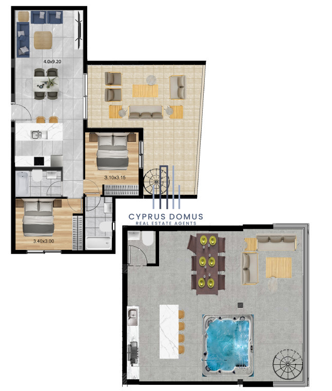 This exclusive 2-bedroom penthouse apartment features an impressive internal space of 83 m², offering two spacious bedrooms and two bathrooms. Large windows invite natural light, while thoughtful layouts ensure privacy and convenience for every resident.