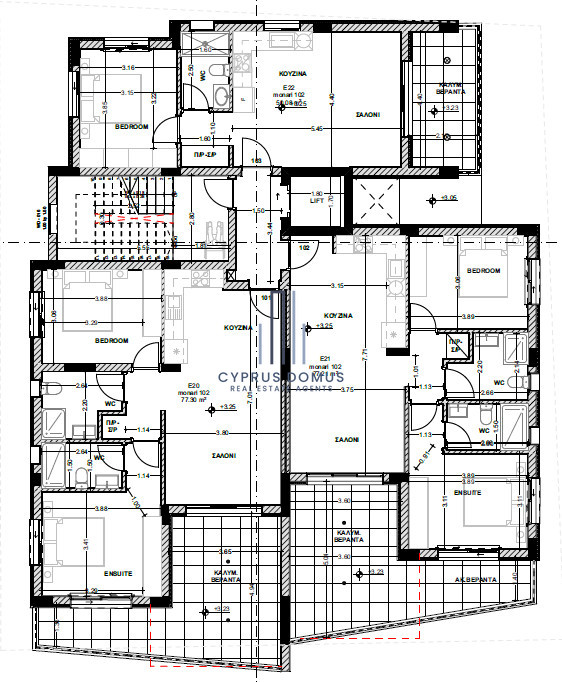 This apartment offers 77.3 m² of thoughtfully designed internal space, featuring two spacious bedrooms and two well-appointed bathrooms, providing comfortable living.