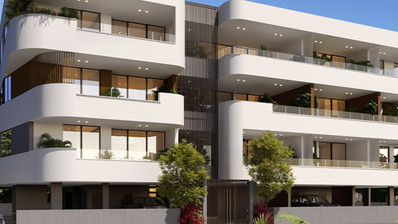 This penthouse offers 77.3 m² of thoughtfully designed internal space, featuring two spacious bedrooms and two well-appointed bathrooms, providing comfortable living.
