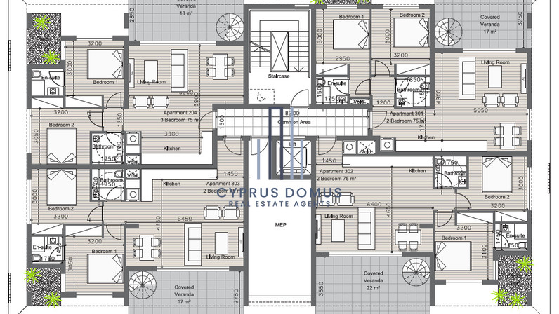 This penthouse apartment offers 75 m² of well-designed internal space, including two bedrooms and two bathrooms.