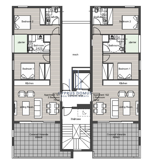 This spacious property offers 75 m2 of thoughtfully designed internal space, boasting two comfortable bedrooms and two modern bathrooms.