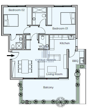 Modern two-bathroom apartment with an internal space of 88.5 m² in the sought-after Germasogeia Tourist Area. The apartment features open-plan living, with natural light filling each room, and high-quality finishes throughout.