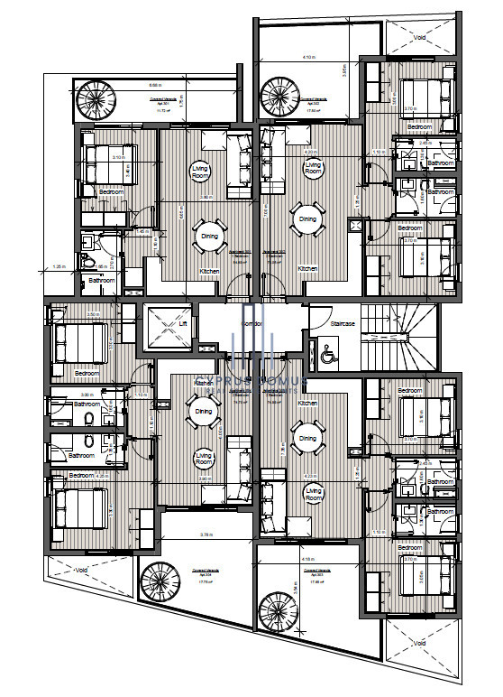 This modern penthouse offers 75 square meters of well-designed internal space, including two bedrooms and two bathrooms. The carefully planned layout ensures both comfort and practicality.