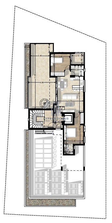 This penthouse apartment covers 79 square meters of internal space, offering comfortable living for individuals, couples, or small families.