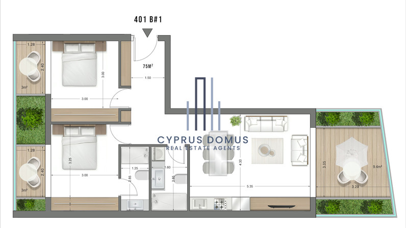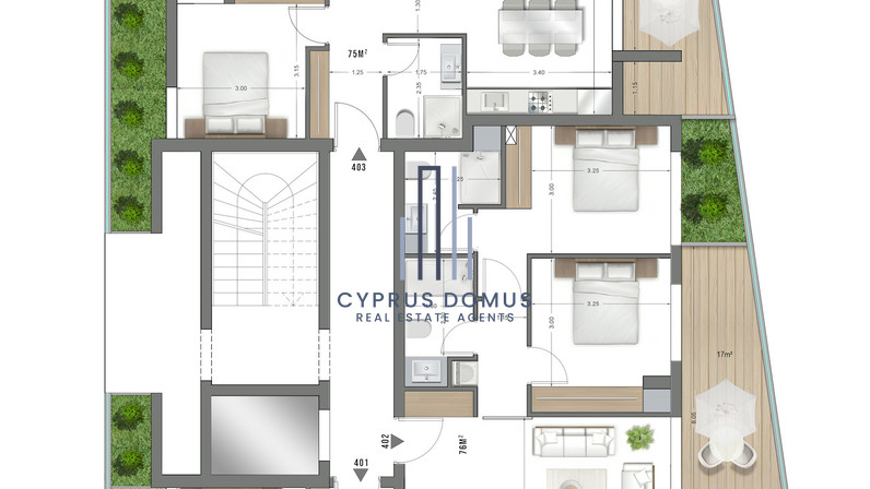 This penthouse apartment spans a comfortable 75 square meters of internal space and boasts a well-designed layout with two bedrooms and two bathrooms, making it ideal for couples, young families, or as an investment opportunity.