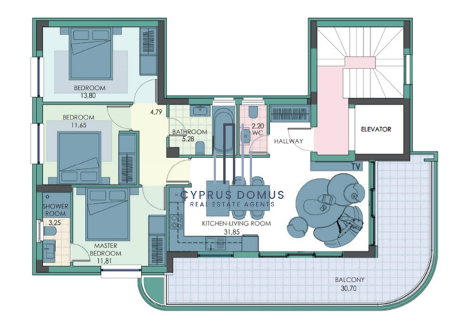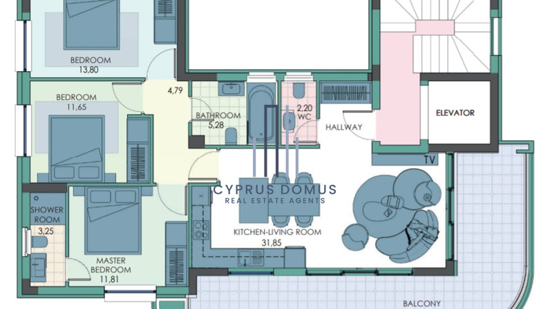 Spanning an internal space of 103.2 square meters, this residence offers a thoughtful layout with three spacious bedrooms, two modern bathrooms, and 1 guest w/c.