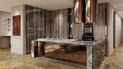 The residence offers the infrastructure of a five-star hotel: indoor swimming pool, SPA area, modern gym, café, coworking space, children’s playroom, lounge spaces and a respectable reception with a concierge service.