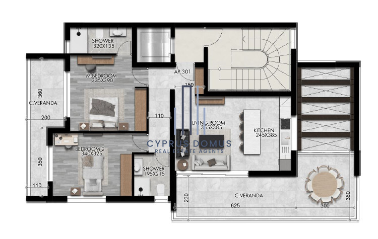 This thoughtfully designed home offers an internal space of 80 square meters and provides a comfortable environment, featuring two bedrooms and two bathrooms. The open-plan living and dining area is bright and welcoming, making it ideal for both relaxation and entertaining guests.