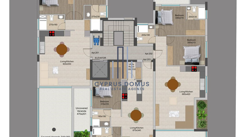 This thoughtfully designed penthouse apartment offers an internal space of 80 square meters, providing both comfort and practicality. The apartment features two spacious bedrooms, each with ample natural light, and three bathrooms.